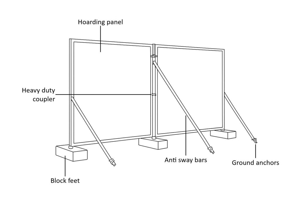- Anti-sway bars are especially recommended for long, continuous hoarding runs or sites where wind loading is a concern