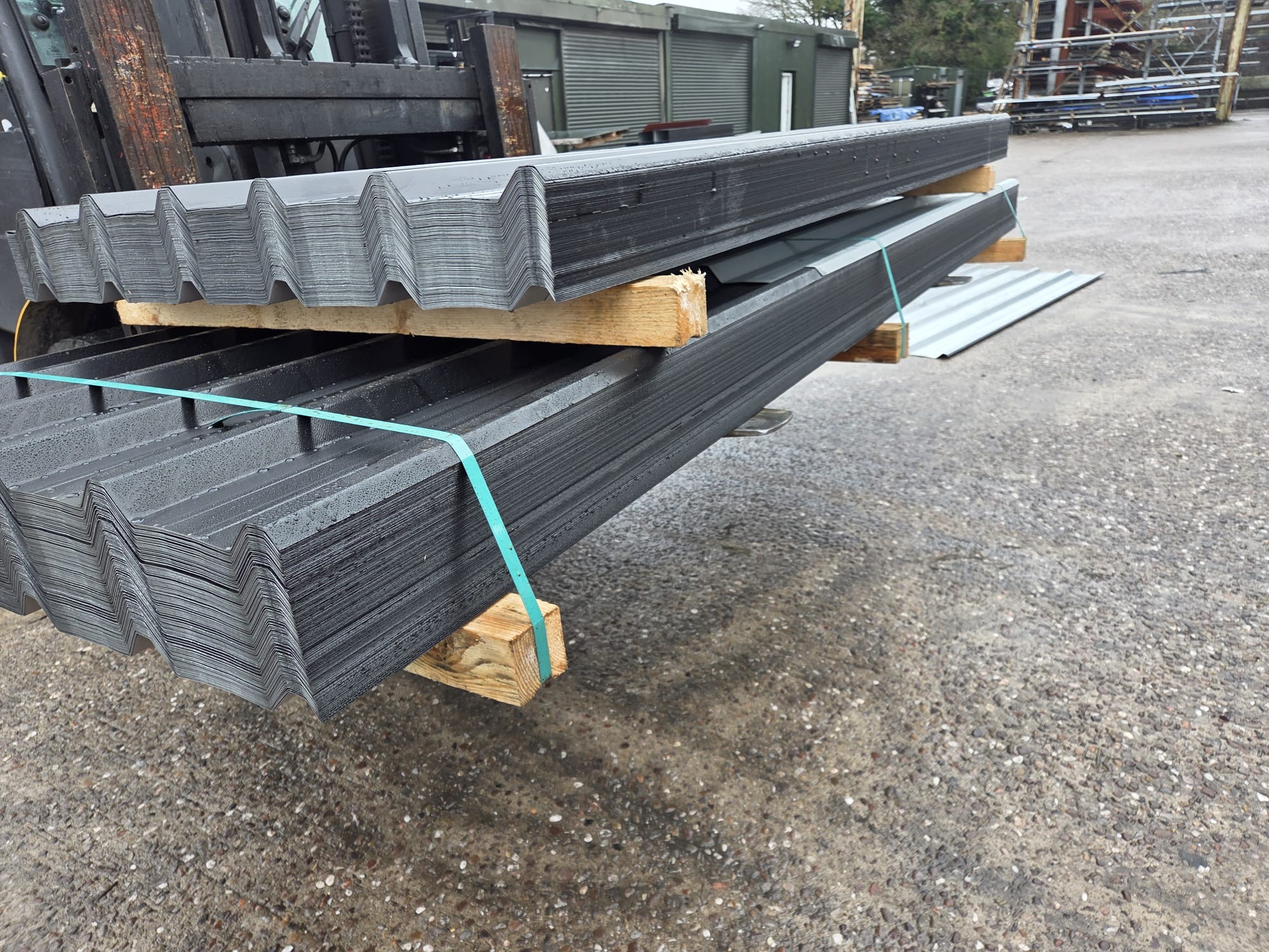 - (Qty) 14 x 3.05m (10ft) Black PVC Plastisol Coated Scintilla Steel Box Profile Roofing Sheets, 0.5mm Gauge, 1m Cover Width (RB Black) = £350 + VAT = £420