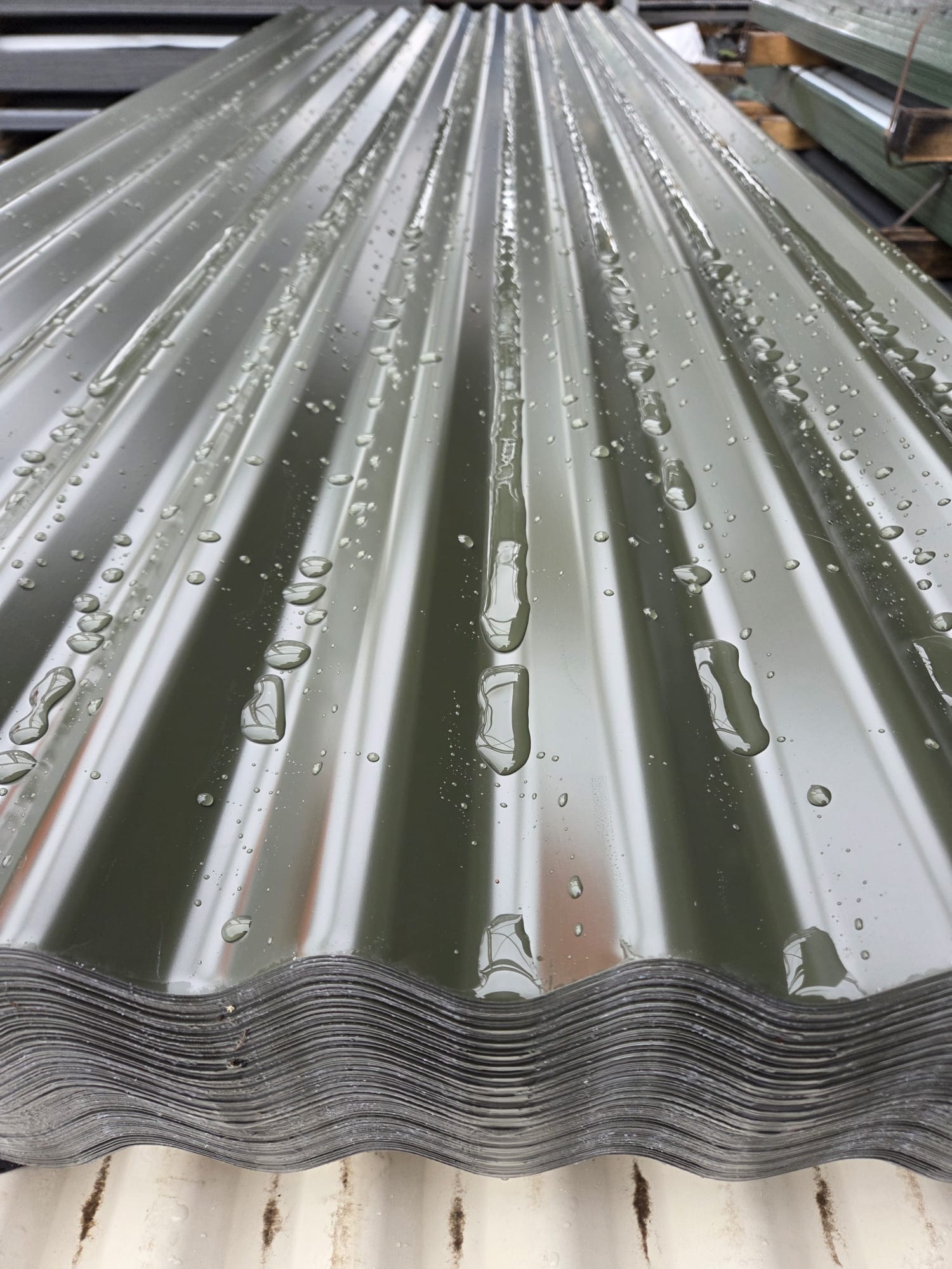 - (Qty) 10 x 3.05m (10ft) Juniper Green Polyester Coated Galvanised Steel Corrugated Roofing Sheets, 0.65mm Gauge, 762mm Cover Width = £170 + VAT = £204