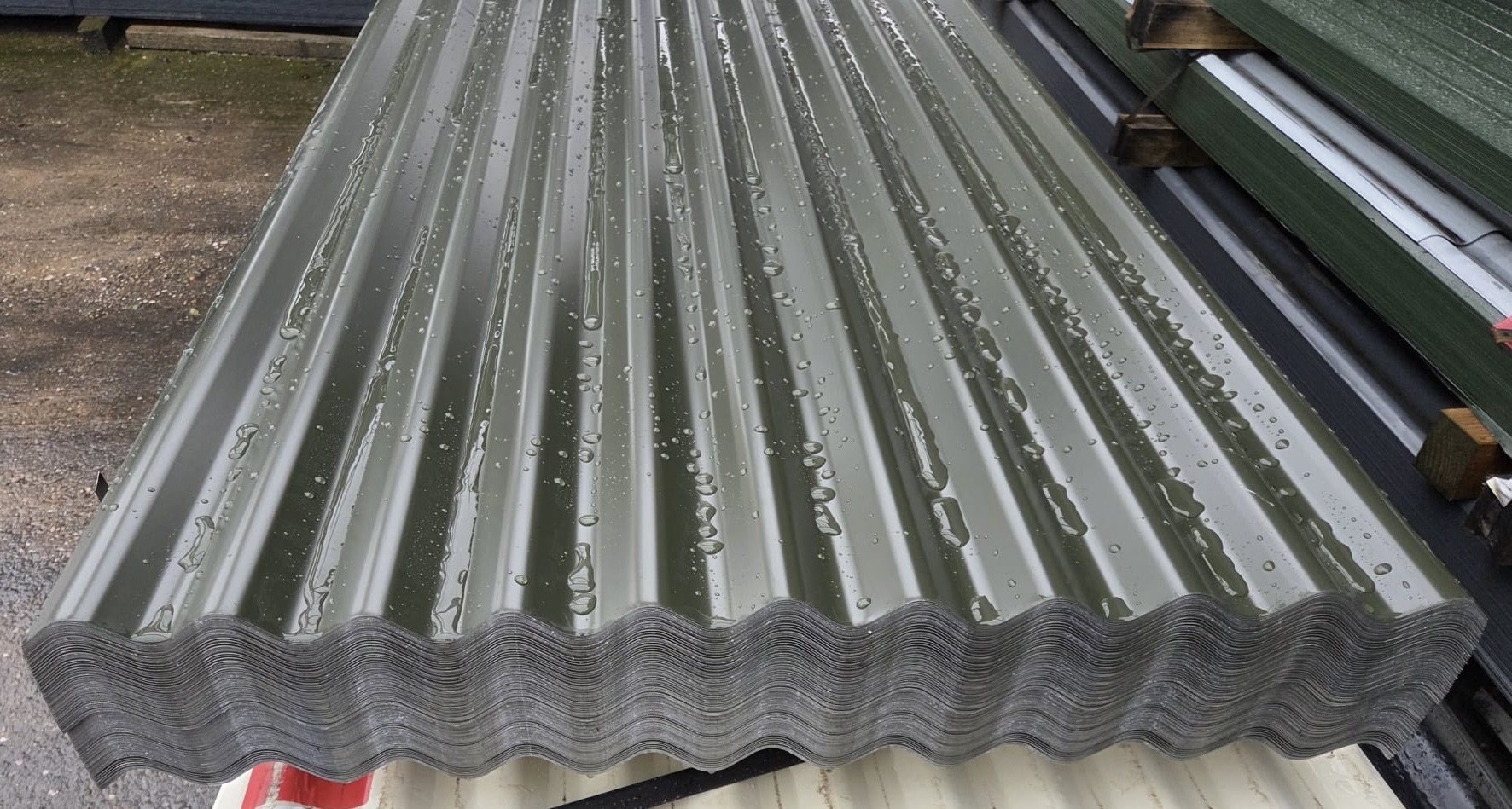 - (Qty) 20 x 2.44m (8ft) Juniper Green Polyester Coated Galvanised Steel Corrugated Roofing Sheets, 0.65mm Gauge, 762mm Cover Width = £272 + VAT = £326.40