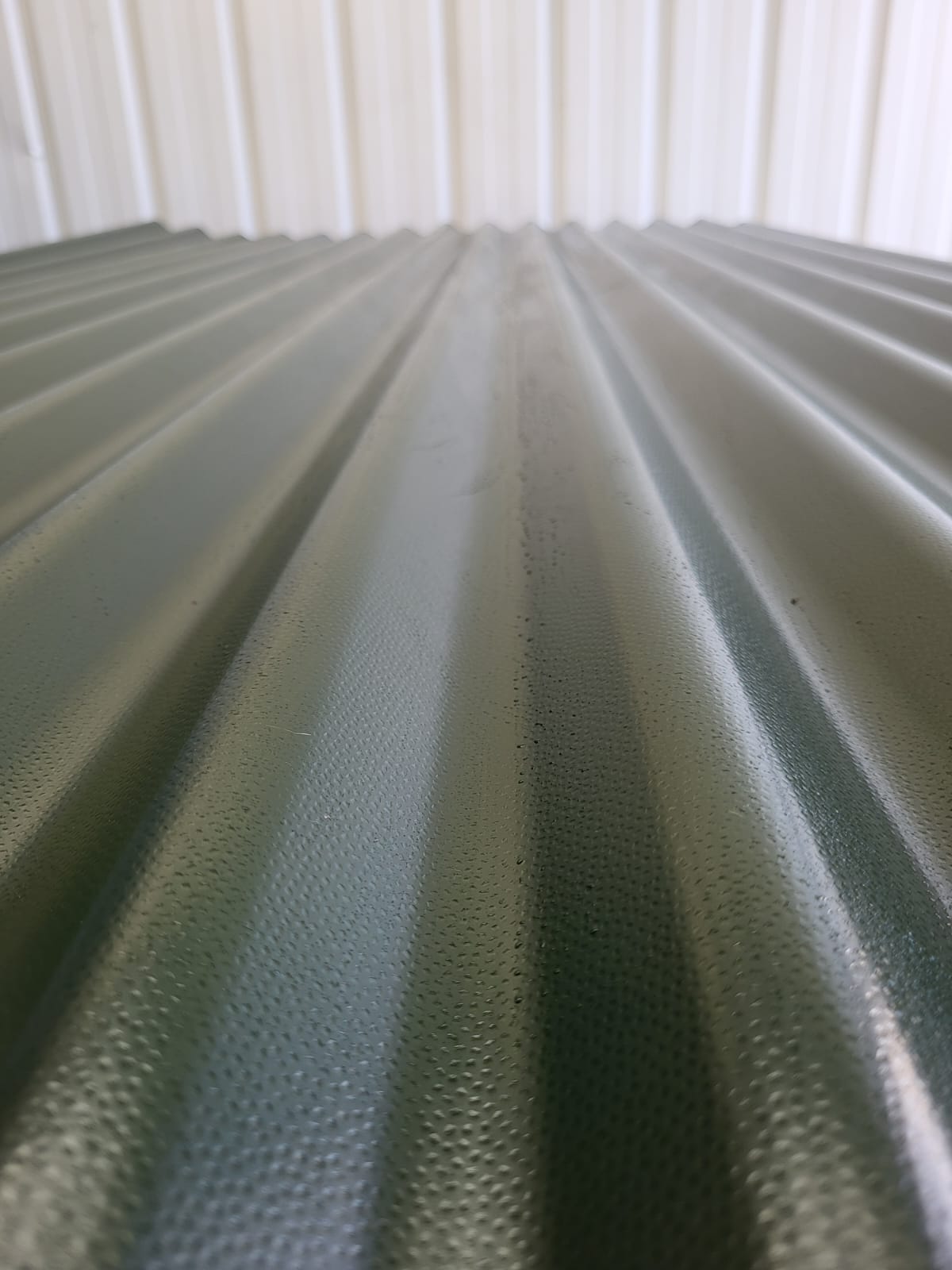 - (Qty) 5 x 2.44m Juniper Green PVC Scintilla Coated Galvanised Steel Corrugated Roofing Sheets, 0.5mm Gauge, 1m Cover Width = £100.04 + VAT = £120.05