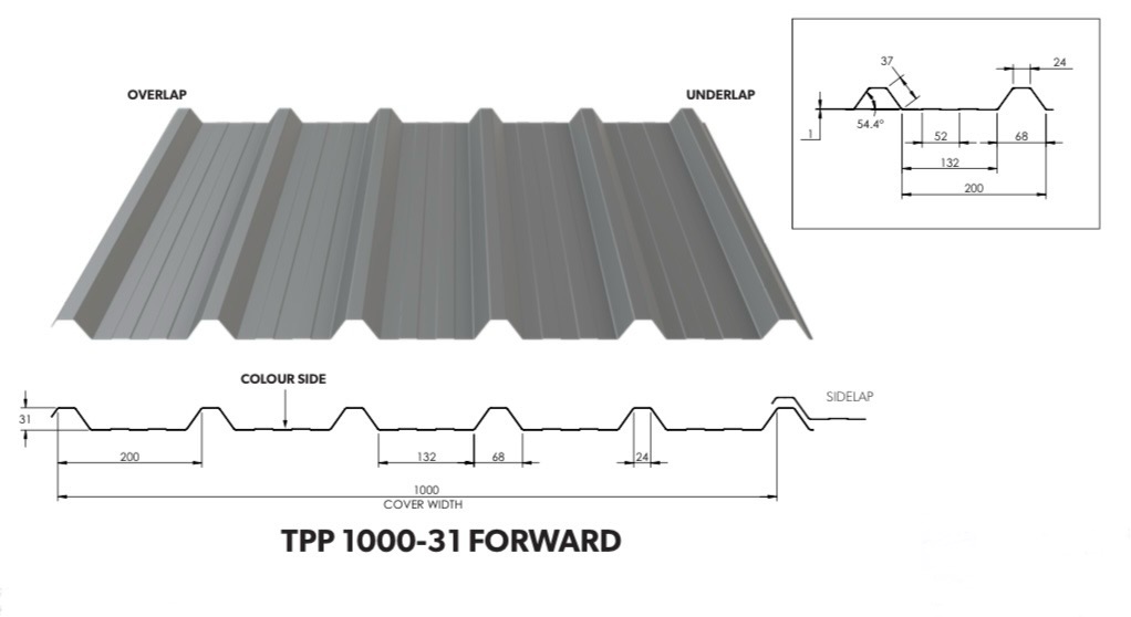 - (Qty) 18 x 3.05m (10ft) Goosewing Grey PVC Plastisol Coated Galvanised Steel Box Profile TPP 31/1000 Roofing Sheets, 0.7mm Gauge, 1m Cover Width = £360.00 + VAT = £432.00