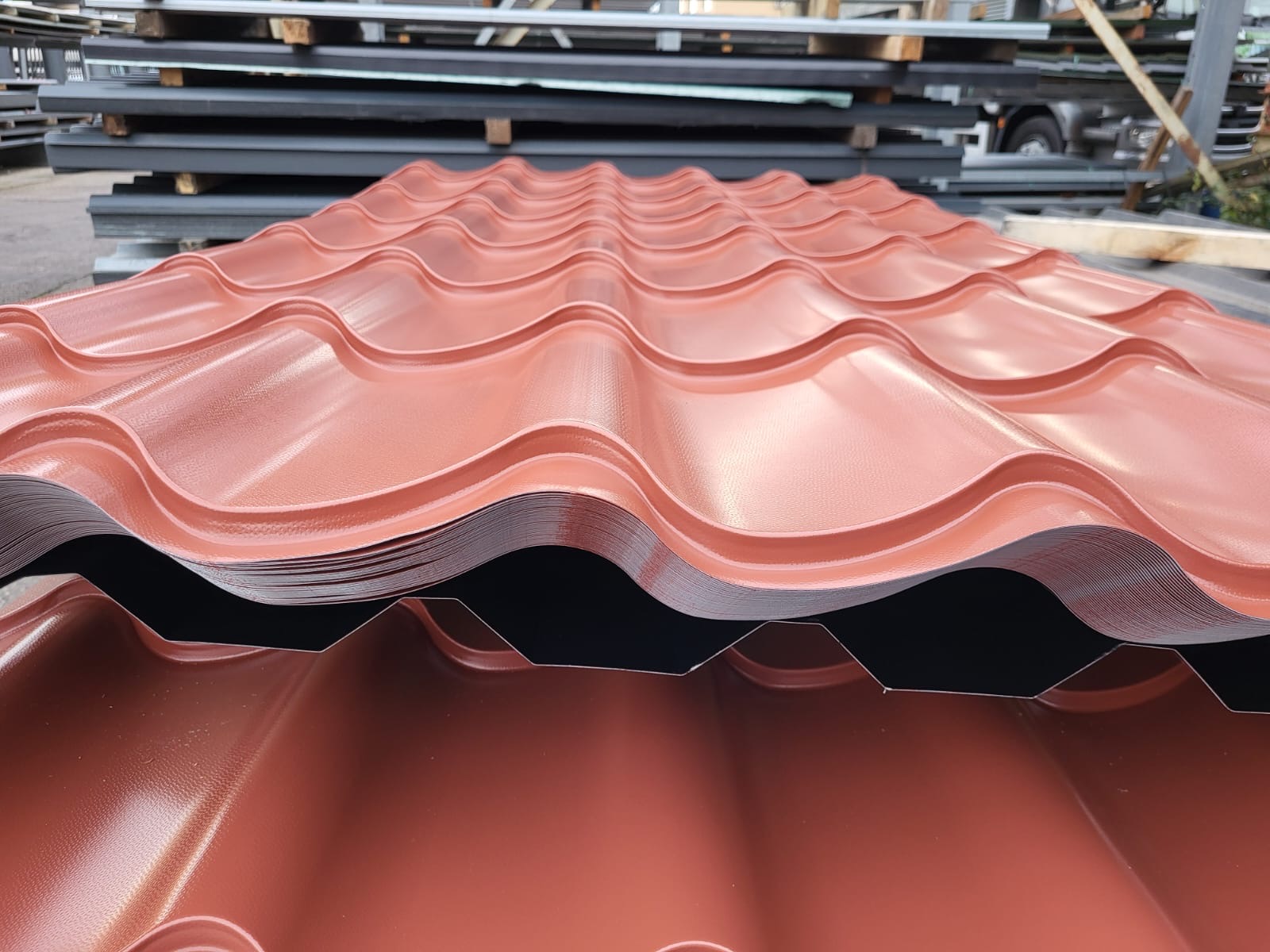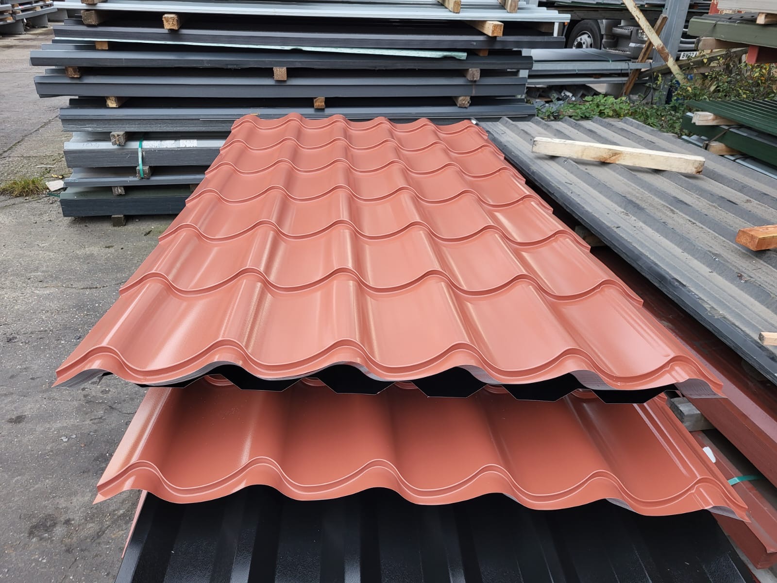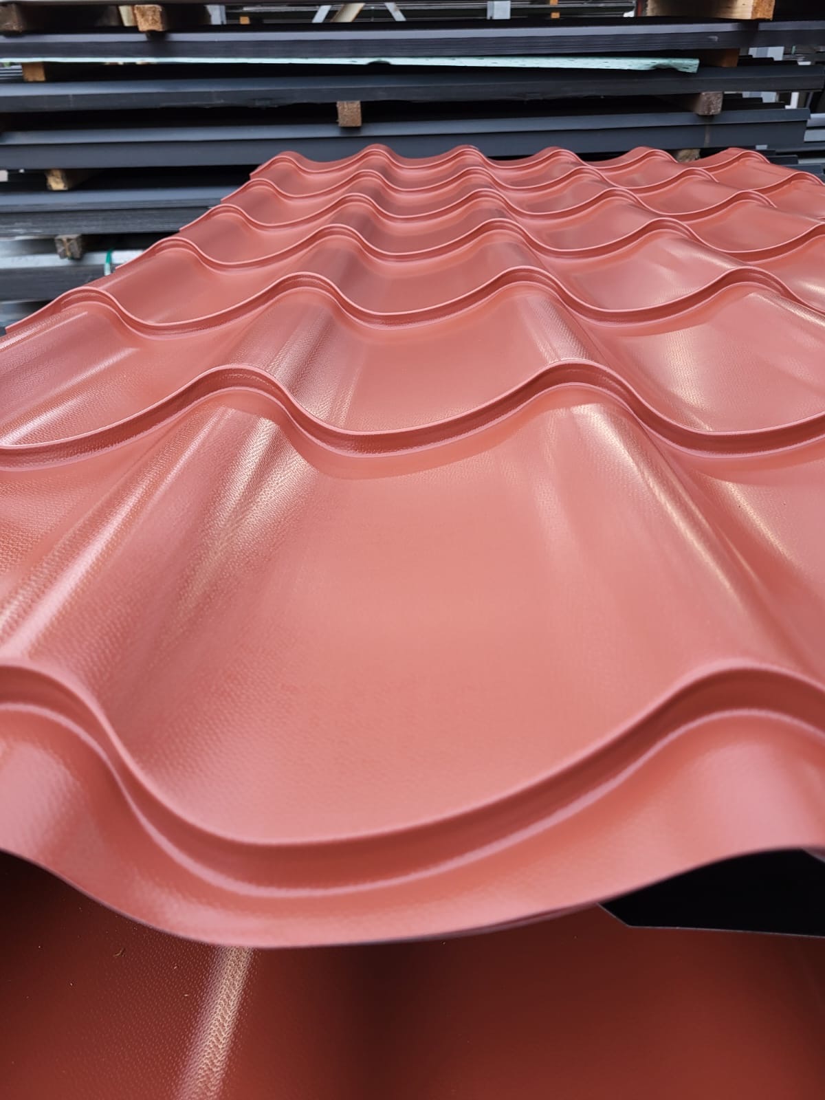 - 10 x 6.56ft (2m) Terracotta PVC Coated Galvanised Steel Pan Tile Roofing Sheets (from stock) = £180.00 + VAT = £216.00